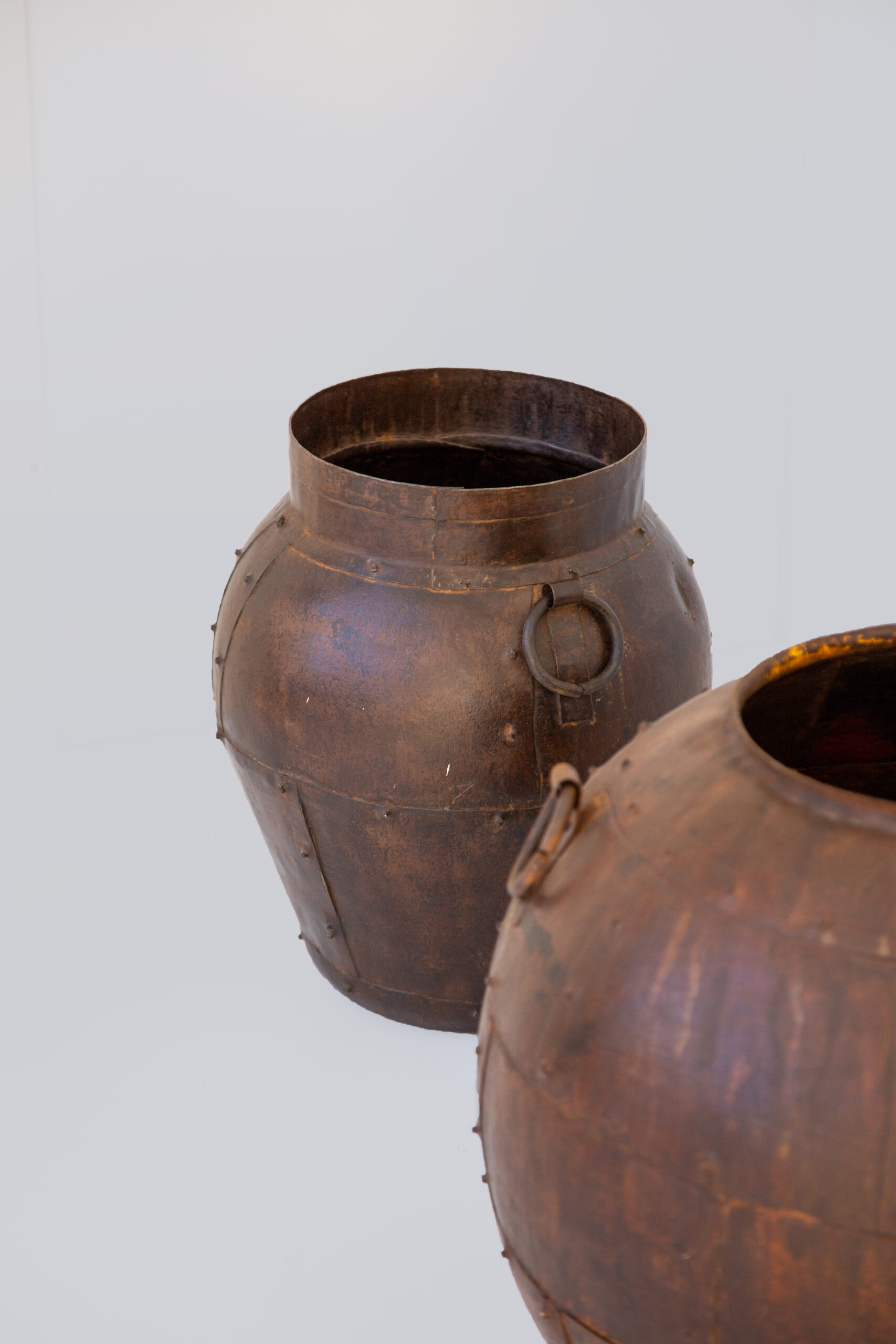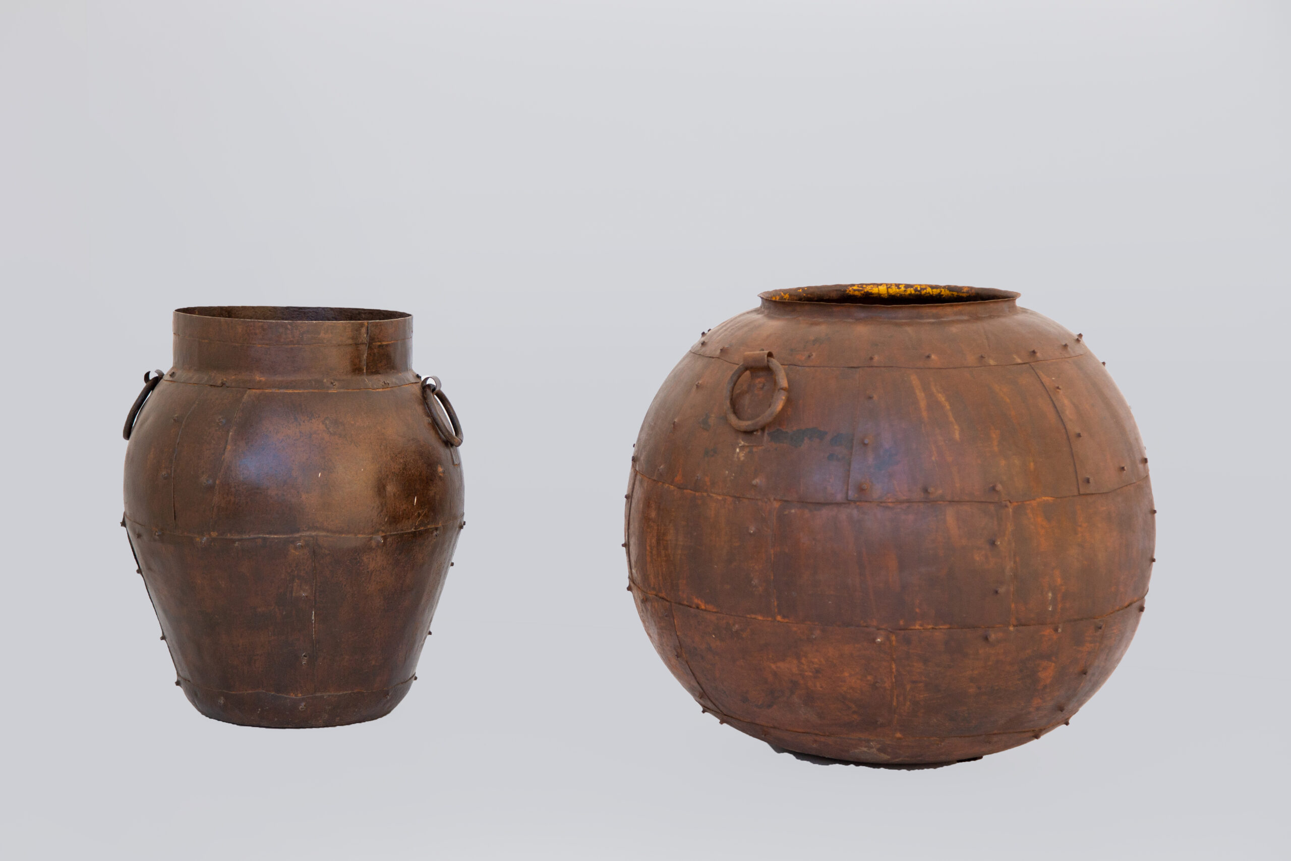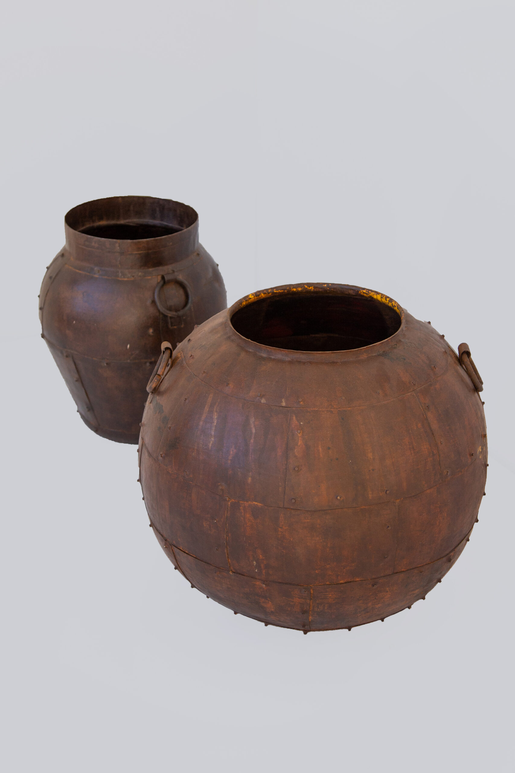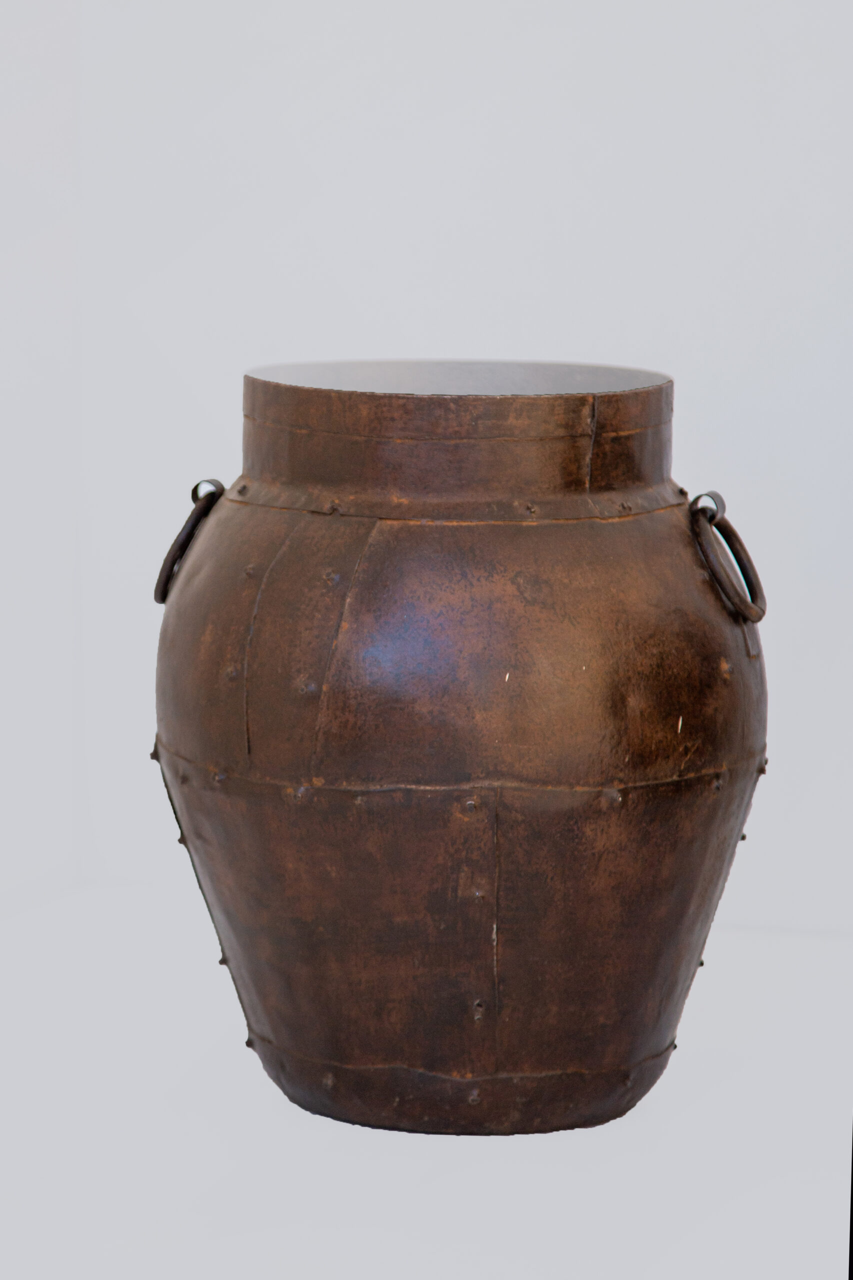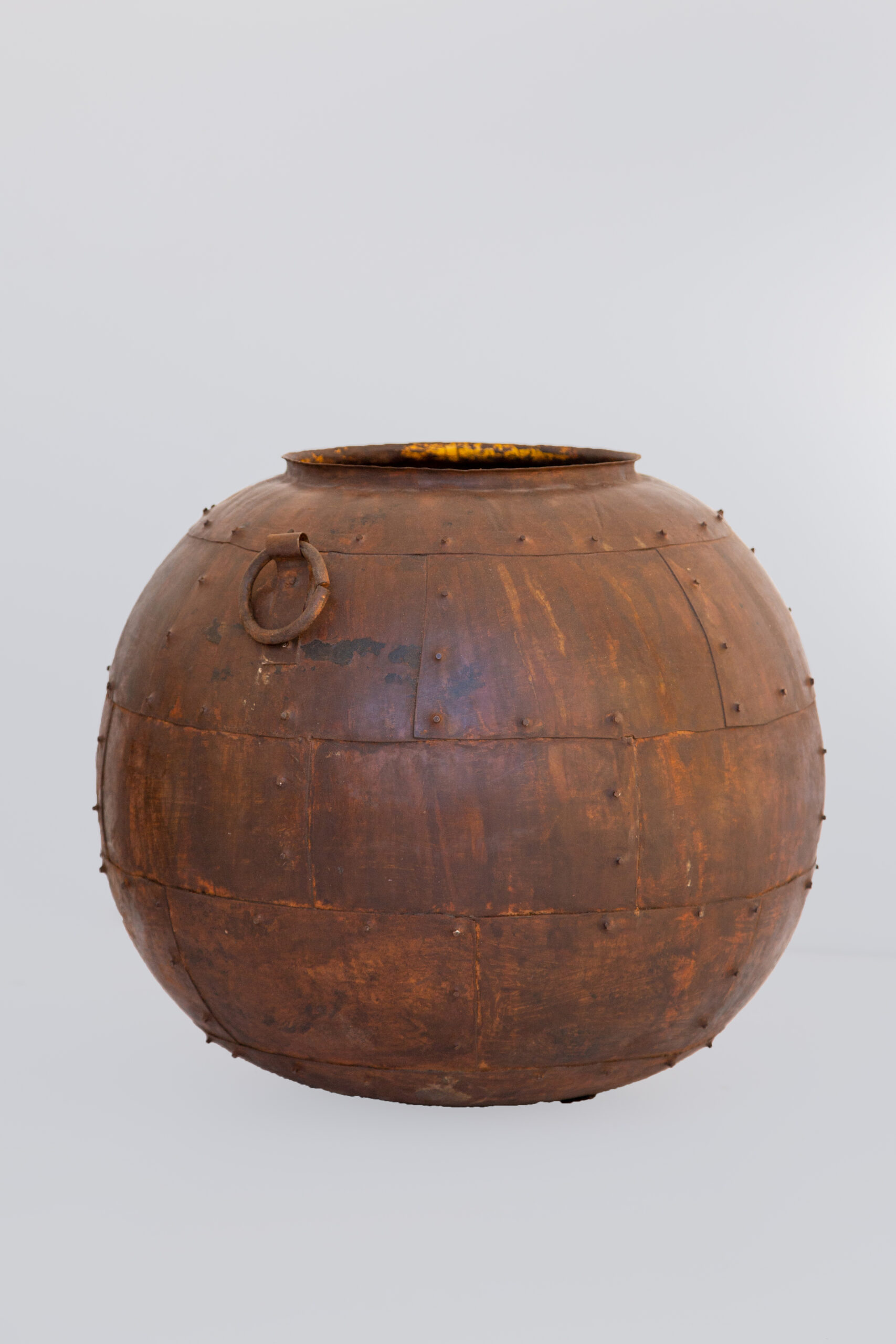 Διακοσμητικό μεταλλικό βάζο δαπέδου ενωμένο με καρφιά χειροποίητο . Είναι κατασκευασμένο από ανακυκλωμένο μεταλλικό υλικό.
